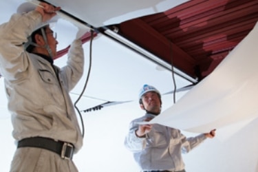 足場を最小限にすることが可能なのでコストの削減にもなります。工場等での施工の場合も、既存備品や工作機械を移さずに施工が可能なので、事業への影響を最小限に抑えることができます。膜自体の価格は、従来の膜天井とほぼ同等の価格になります。