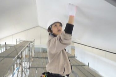 これまで天井のなかった建物にも隙間なく張ることができます。強化繊維を専用治具でテンションをかけて張るため、弛みなく大きな面積を一挙に施工できます。多様なカラーから選べ、室内空間のデザイン性や快適性を高めることができます。