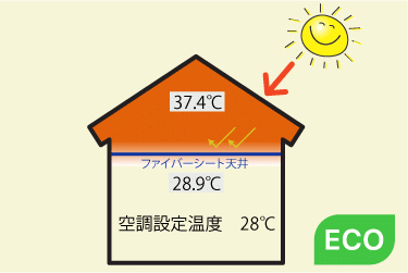 独建物の空調効率が大幅改善されます。省エネ効果も期待でき、空調コストも大幅に低減できます。遮熱仕様の場合は、約30%も空調効率UP!